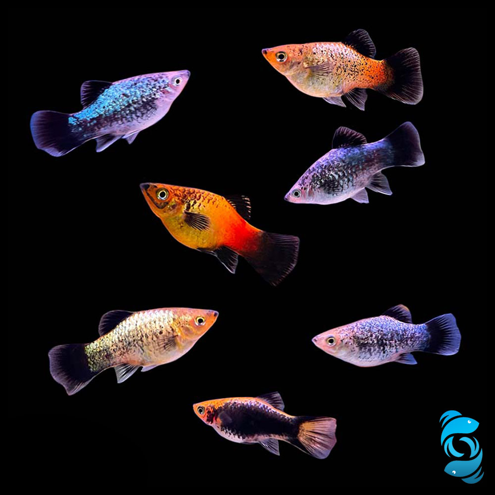 You will find guppies come in many different colours, patterns and even shapes for example, a blue grass ribbon, or a german white tuxedo, a mosaic, a snakeskin, a lace, a leopard to name a few.